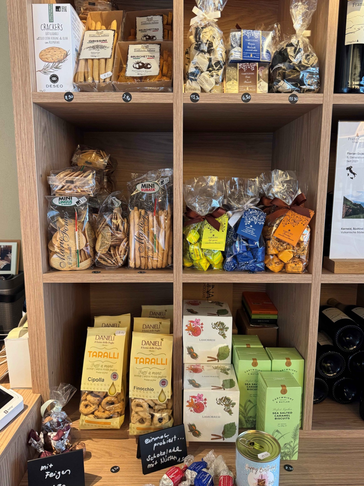 Ausserdem finden Sie bei uns eine erlesene Auswahl weiterer qualitativ hochstehener Produkte wie Oliven, Olivenöl, Essig, Balsamico, Schokolade oder Teigwaren. Suchen Sie etwas Spezielles, einen Gutscheine oder ein Geschenkset? Dann sind Sie bei uns genau richtig.